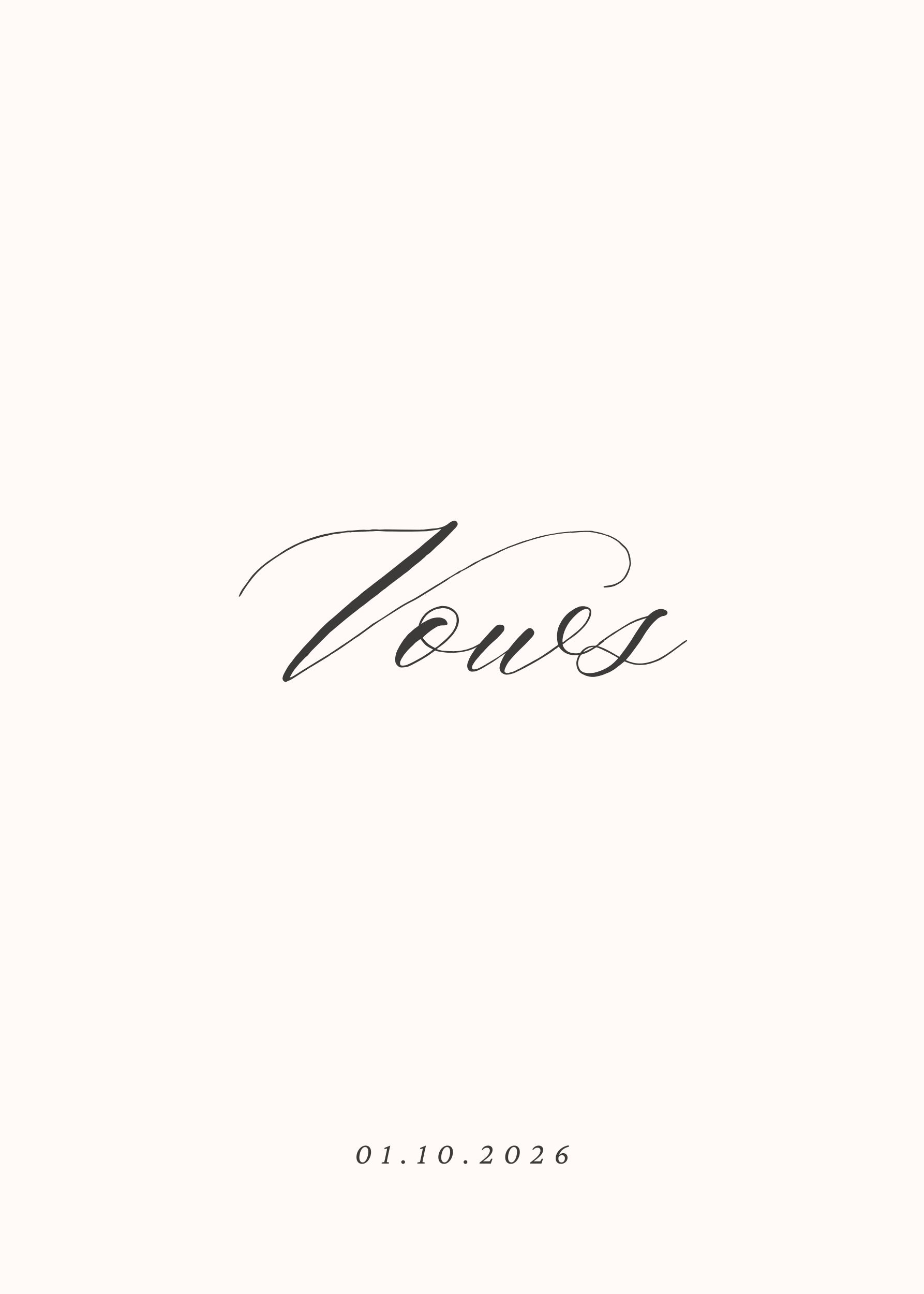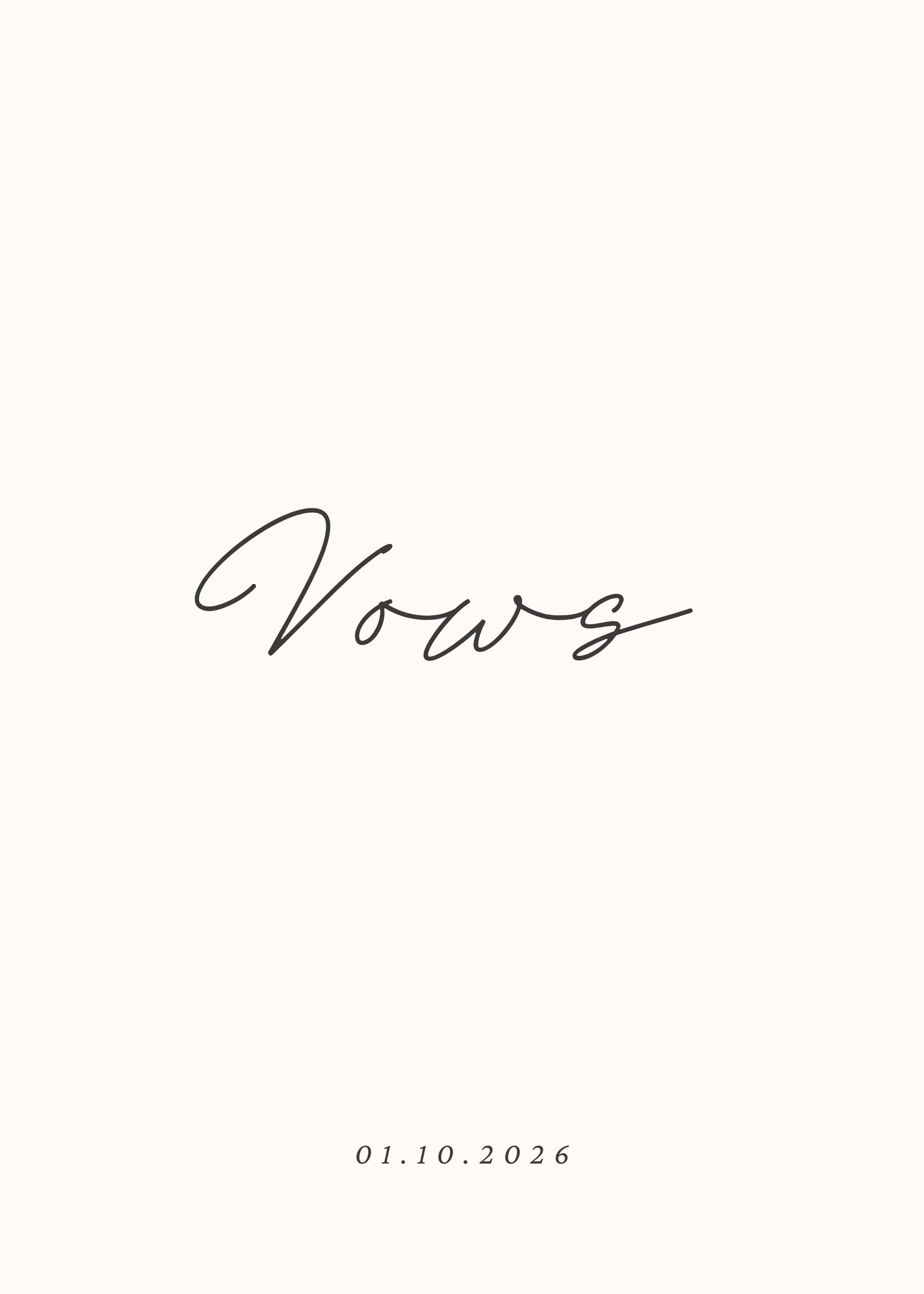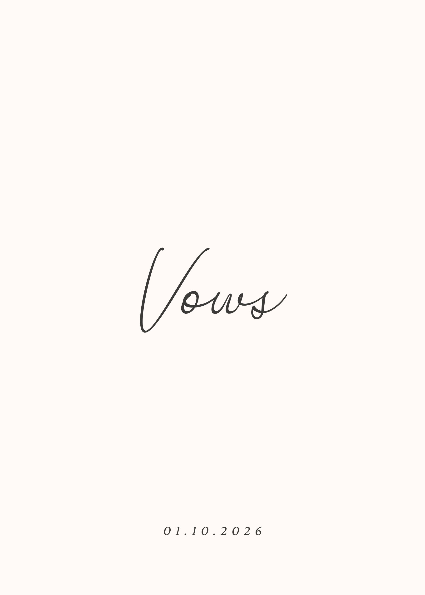 A timeless and refined wedding vow card designed to hold your most heartfelt promises. Crafted from premium, high-quality cardstock with a soft matte finish, this card exudes elegance and meaning. The front features the word "Vows" in delicate script, available in your choice of font for a sophisticated touch.